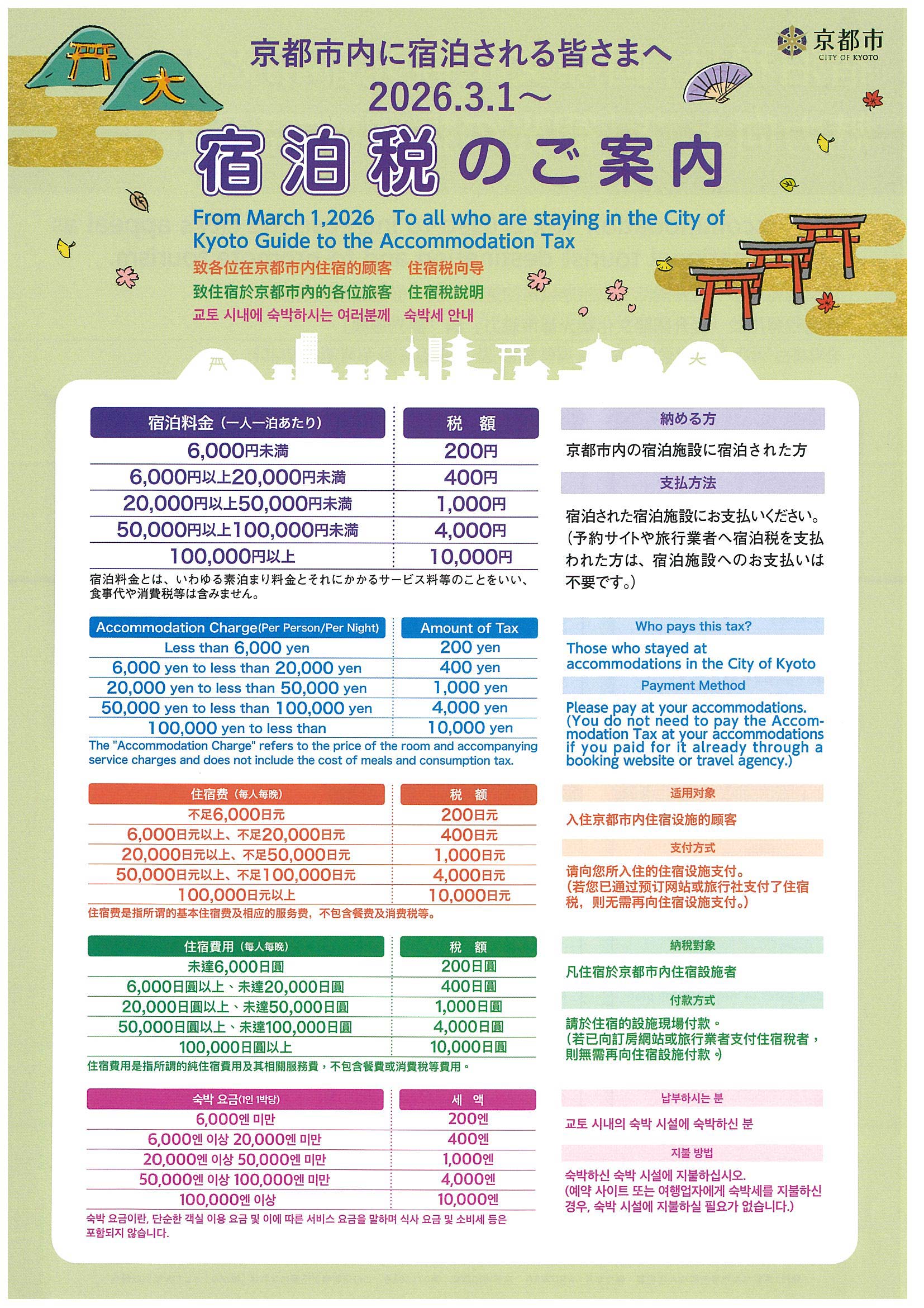 平素より、四条河原町温泉 空庭テラス京都をご利用いただき、誠にありがとうございます。 京都市の宿泊税につきまして、2026年3月1日から、下記の通り改正いたします。